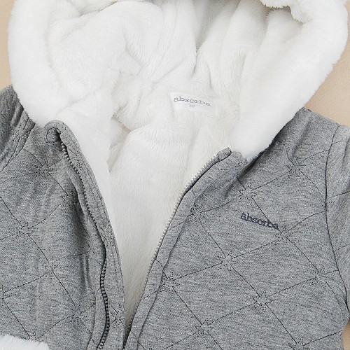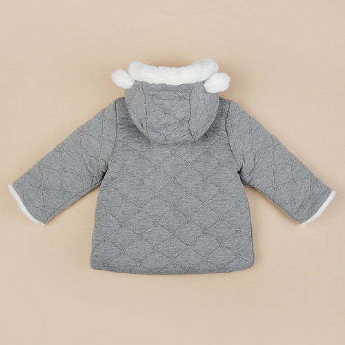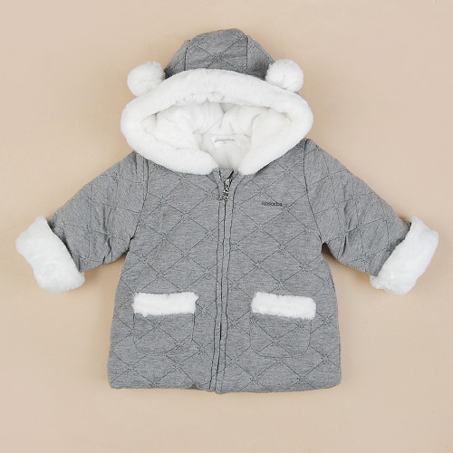 -촉감이 부드럽고 포근한 패딩점퍼로 후드와 소매,주머니에 퍼배색이 귀여움을 더해줍니다.