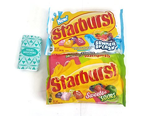 -. Title : Starburst fruit chews sweets-sours & summer splash 14 oz (pack of 2) plus tissues pack