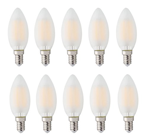 JCKing 10-Pack Dimmable AC 110-130V E14 LED Filament Vintage Light Bulb, 6W LED Frosted Candle Bulbs, 60W Incandescent Bulbs Replacement, SES Candle Light Bulb for Chandelier, Warm White