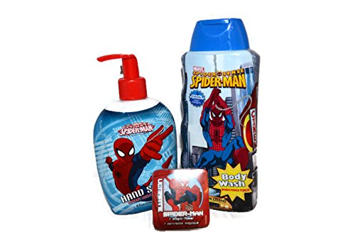Spiderman Handsoap, Body Wash, Magic Towel Bath Bundle- 3 Items