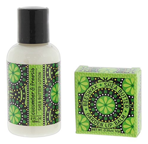 Bundle of 2 Greenwich Bay Beeswax Shea Butter Lip Balm & 2 Ounce Lotion Set (Cucumber Freesia)