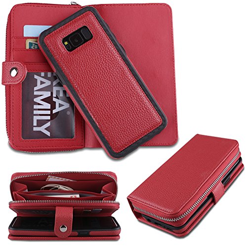-. Title : eloiro Samsung Galaxy s8ジッパー財布型ケース、PUレザーボタン留めシェル取り外し可能つ折りフリップバックカバー保護ソフトスキン現金、カードスロット&取り外し可能なストラップfor Galaxy s8 – レッド