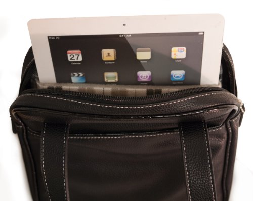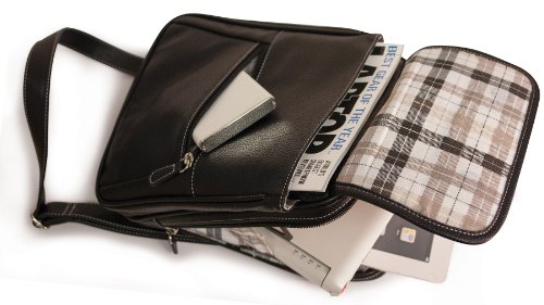 - Feature : Professional style woman's small crossbody messenger / Organizer Section for cell-phones, flash drives, memory cards, pens / Poly-fur lined 10" tablet pocket / Adjustable Crossbody strap / Fashion-inspired cotton twill interior / Durable Vegan Leather exterior with contrast stitching / Exterior pockets for easy-access / Lifetime Warranty