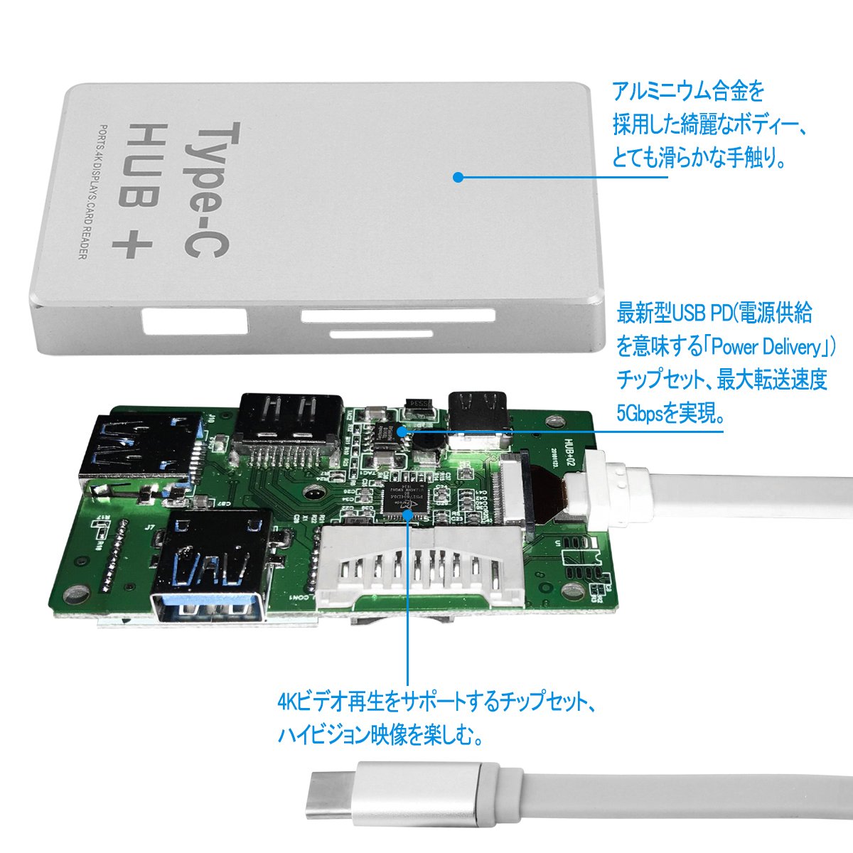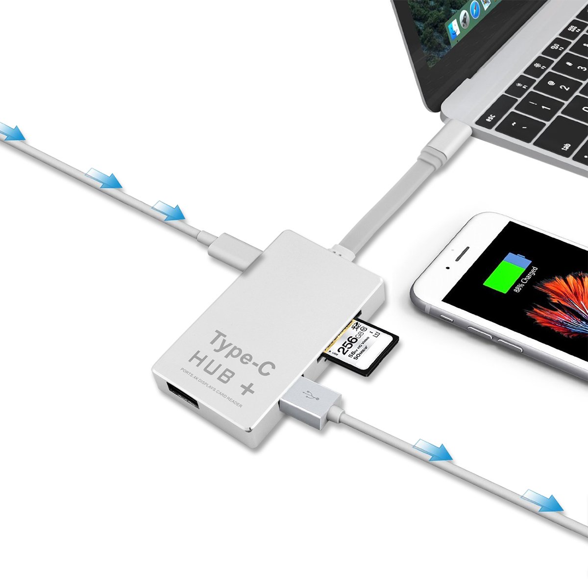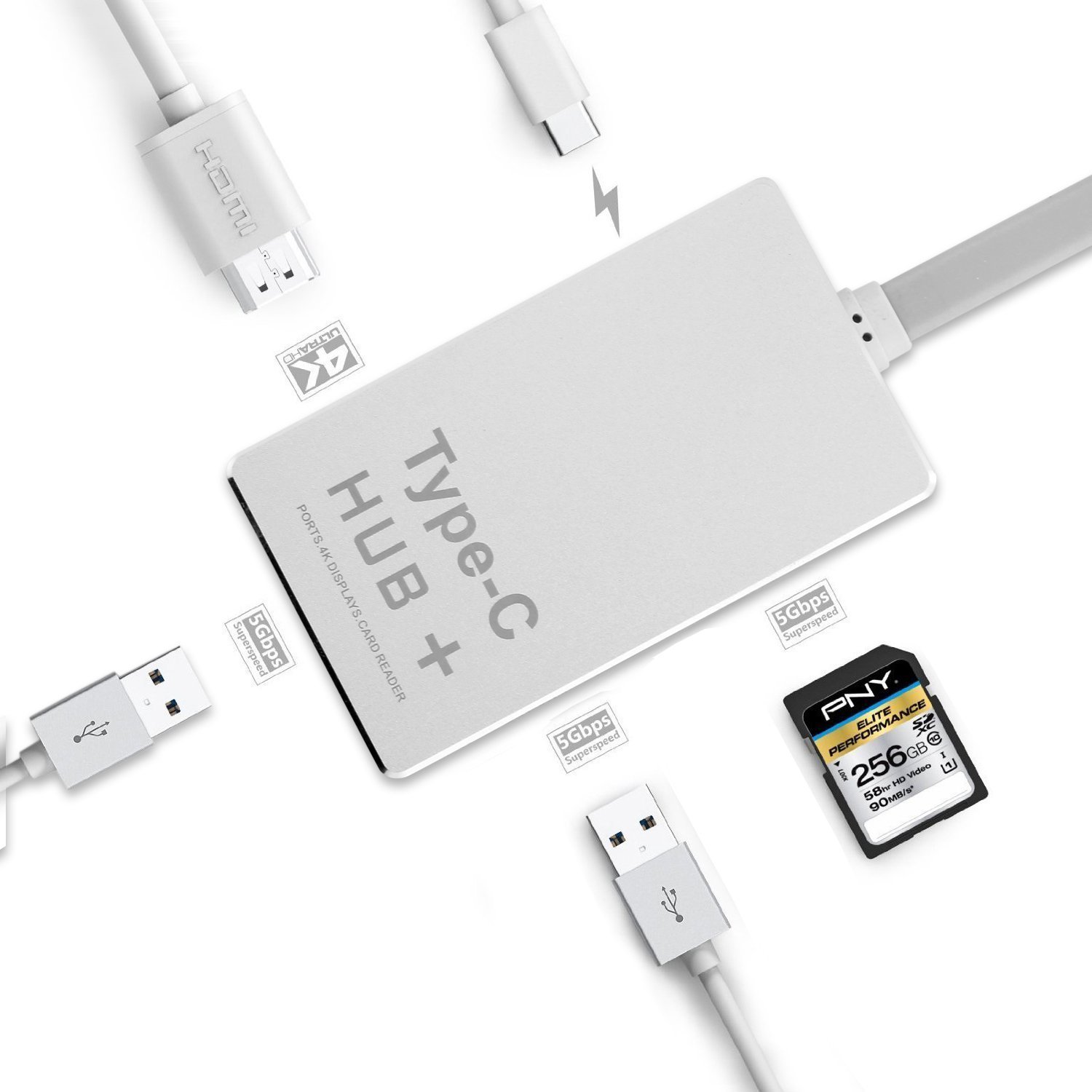 Add 4K (30Hz) HDMI, Type-c pass-through charge port, USB Type-A port x2, SD & Micro SD card slot to your computer.