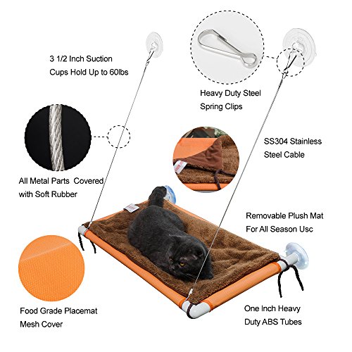 あなたの窓ガラスの上に簡単に取り付ける:スペースを節約する猫窓のとまり木は、4つの大きな吸盤であなたの窓ガラスの上にセットアップされて、数秒で取り除かれることができます。道具は必要ありません!注意:このとまり木に必要な最小ウィンドウサイズは、W 24 x H 26インチです。 食品グレードの通気性のプレマットメッシュカバー:メッシュカバーは食品グレードと通気性のあるプレースマット材料から正確にカットされています。彼らは化学薬品のにおいがありません!あなたのキティは日光浴をするか、外で鳥を見るために居心地の良い、贅沢な窓のベッドに値します! 最大の吸引カップは60LBSまで持ちこたえることができます:我々の特別に設計された3.5インチの吸盤は最大60ポンドの重量を支えます、そして、彼らは他のデザインより日光と熱の下ではるかに大きい信頼性と寿命を提供します。 取り外し可能な豪華なマット:各キャットパーチには取り外し可能な超柔らかい豪華なマットが付いています。それは簡単な掃除とオールシーズンの使用の両方のためです。 重い義務のある部品:キャットパーチは1インチの頑丈なプラスチック管と付属品から作られます。 2本のケーブルはSS304ステンレス鋼であり、それらはまたあなたの猫をあらゆる潜在的な怪我から保護するために柔らかいゴムで保護されています。シャープな金属が露出していません!