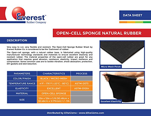 - ★ RUBBER SHEET - Includes 1 Open Cell Sponge black sheet of rubber 12 in x 12 in by 1/8 in