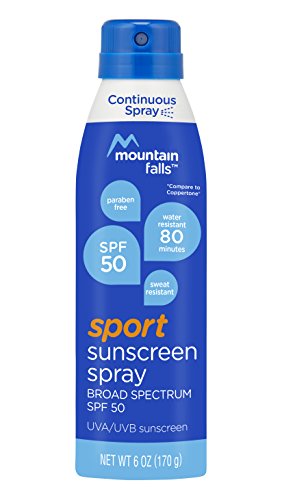Amp up your sun protection with Mountain Falls Sport Sunscreen Spray SPF 50. For those days when you want to push your workouts a little longer, this Paraben-free, continuous spray sunscreen keeps you protected. The broad spectrum, lightweight formula won't run when you sweat and is water-resistant up to 80 minutes.Feature
