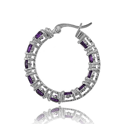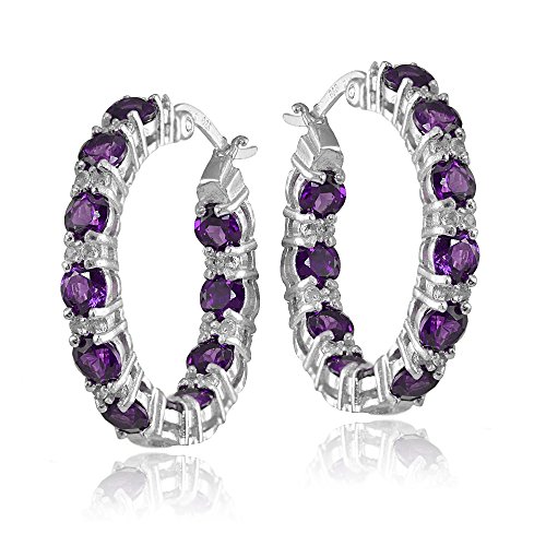 This gorgeous hoop features round-cut african amethyst gemstones set in a sturdy prong-setting. These earrings are secured with post with snap-down clasp.