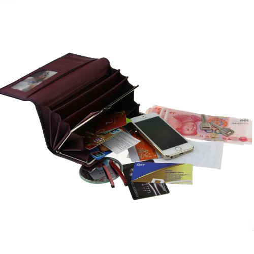 - Feature : There are 8 card holders, 1 iPhone/Tissue(Slim) holder,1 photo/driving card holders, 4 money holders, 1 clasp/hasp pocket(contains 2 holders), 1 receipt holder with small zip pocket in structure / Stud pop button closure clamshell flip design, decorated with a crocodile grid / Neat lines, high grade metal accessory, unique design, real leather material makes the purse smooth,natural,classy,comfortable and durable / Dimensions (L*W*H): 7.08"x3.54"x1.1"(18x9x2.8cm). Great gift for women / Spacious,well-designed and sturdy. Ideal for storing your notes and coins,credit cards,photos and eyeliner,iPhone,tissue,etc