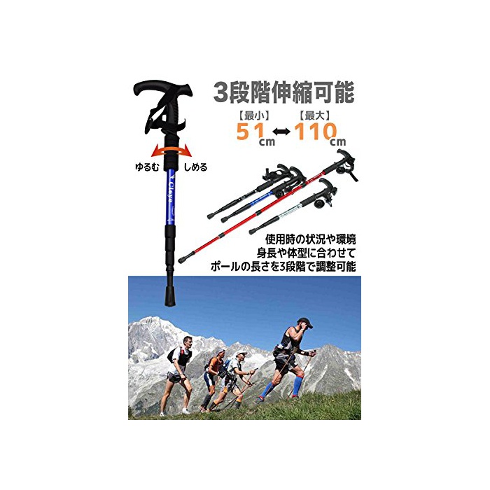 트래킹 폴 본체의 샤프트는 알루미늄제에 가볍고, 신축 성과,3단계에 조절 가능해서 운반에 편리!