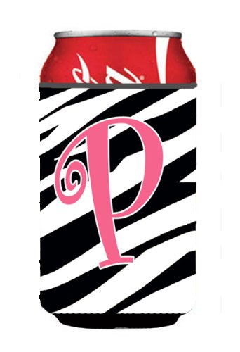 Letter P Initial Monogram - Zebra Stripe and Pink Can or Bottle Beverage Insulator Hugger