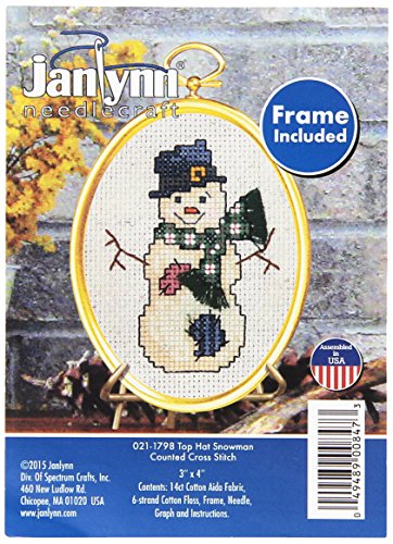 Janlynn 14 Count Top Hat Snowman Mini Counted Cross Stitch Kit, 3" by 4"