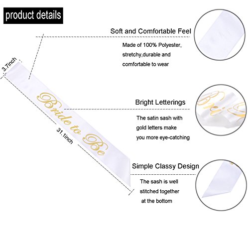 ★HIGH QUALITY:Made of 100% Polyester,premium quality satin and gold stamp bride to be letters.