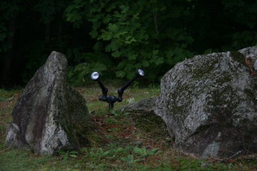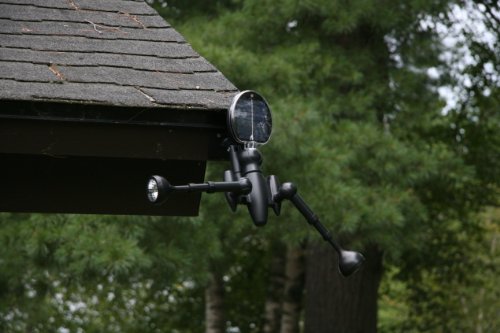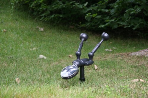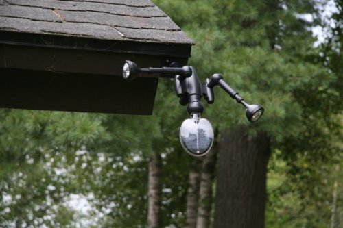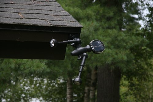 - Feature : Features two independent lights with telescoping connectors and 5 white LEDs per light head (10 LEDs total)- Lumen output: 450 / Swivel hinges provide 360 degree movement and adjustable spotlight moves in a 360 degree direction for superior lighting. Included easy-to-use remote control turns the lights on/off or controls the lights individually / Can be connected to a wall with provided mounting brackets, or put in the ground with a durable yard stake-no main power or wiring required / Water and weather resistant / 360 degree rotating solar panel for better sun exposure