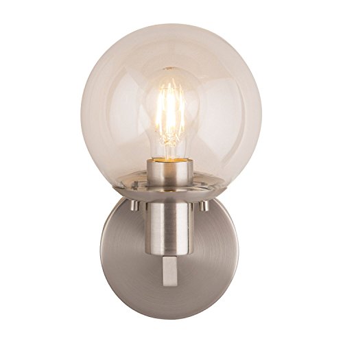 Sferra LED Industrial Wall Sconce – Brushed Nickel w/ Clear Glass Globe – Linea di Liara LL-SC225-BN