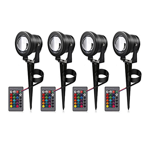Lemonbest Outdoor Decorative Lamp Lighting RGB 10W Color Changing LED Landscape Garden Wall Yard Path Lawn Light DC 12C w/ Spiked Stand Remote control, Pack of 4