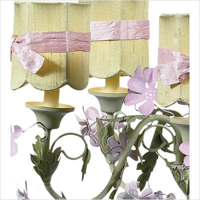 -. Title : Jubilee Collection 929009-2507-305 5 Arm Pink/Green Leaf & Flower Chandelier with Scallop Drum Green Shade and Sash