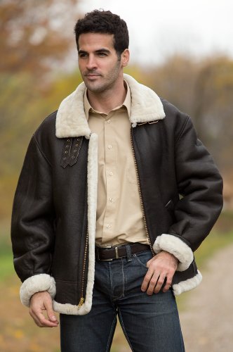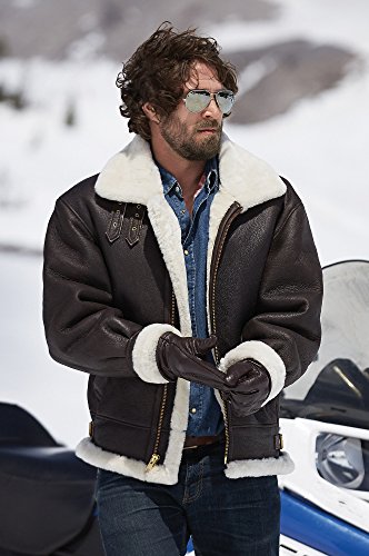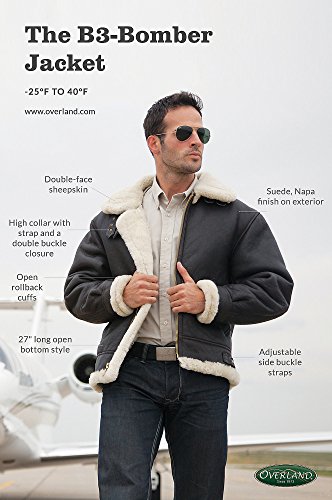 Studio : Overland Sheepskin Co. Publisher : Overland Sheepskin Co. Binding : Apparel Product Description Our Classic Sheepskin B-3 Bomber Jacket is a timeless heavyweight, modeled after the original WWII shearling jackets that kept American bomber crews warm in unpressurized cabins at altitudes over 30,000 feet. Built to perform, Overland's rugged classic shearling sheepskin bomber will have you successfully piloting the most extreme winter weather in style. Zip up, buckle the collar, and enjoy protection from the elements to a degree you never thought possible. Features include two leather-lined slash pockets, adjustable side straps, and rollback cuffs. Made from soft yet durable Napa leather, our Sheepskin B-3 Bomber Jacket delivers unbeatable function and enduring style. Approximately 27" long. Made in Uruguay. 0