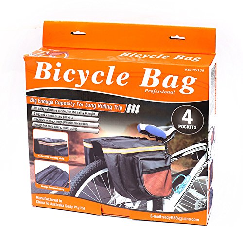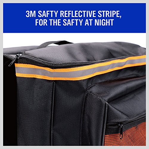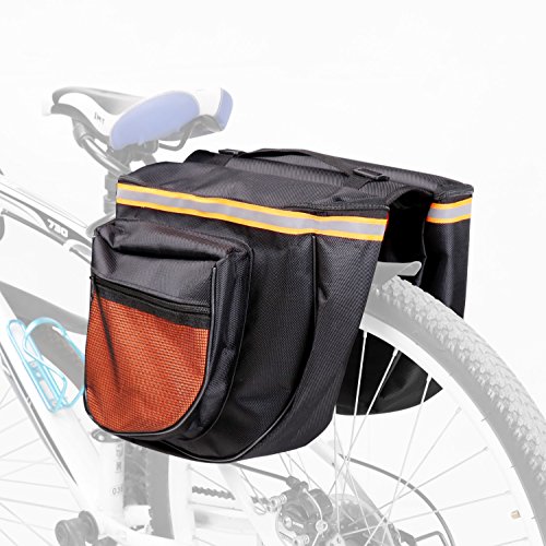 Studio : HORUSDY Publisher : HORUSDY Product Description Description: HORUSDY Bike Bag Bicycle Panniers with Adjustable Hooks, Carrying Handle, 3M Reflective Trim and Large Pockets (rack not included) Large zippered pockets/ Pull tabs double as hangers for lights, keychains BV Bicycle Panniers feature large zippered pockets, 3M Scotch Lite reflective trim that ensures night time visibility. Each pannier has a front pocket and a large main compartment equipped with pull tabs on both ends for easy opening and closing. Handy carrying handle With a handy carrying handle, BV Bicycle Panniers are easy to take off from the bike rack for off-road use. Angled pocket design Its angled pocket design ensures that cyclists have ample pedaling space, while four shelf straps sewn onto the joined middle section fasten onto your rack for extra security.