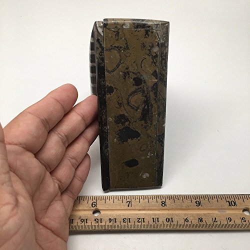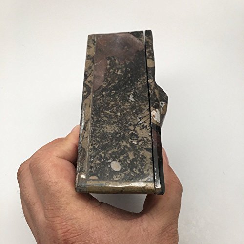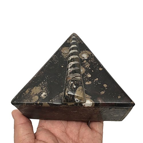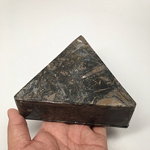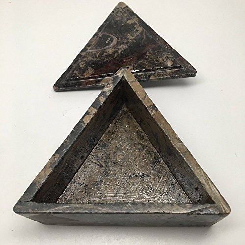 490 Grams Triangle Shape Black/Brown Fossil Orthoceras Ammonite Jewelry Box From Morocco, MF423