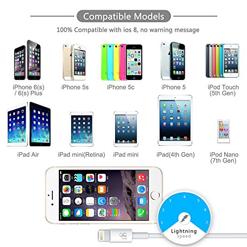 -. Feature : Apple MFi Certified Lightning to USB Cable (3 feet).: Complete charge and sync compatibility with iPhone 6/ 6 Plus, iPhone 6s/ 6s Plus ,iPhone 5s / 5c / 5, iPad Air / Air 2 / Pro, iPad mini / mini 2 / mini 3 /mini 4, iPad (4th generation), iPod nano (7th generation), and iPod touch (5th generation). / Port Wall Charger ,Input Voltage :AC 100~240V,Output Voltage & Current :5V & 2.4A charges your all kind favorite mobile devices. / Both Car & Wall Charger are built with Intelligent Circuit Design, protects against short circuiting, over-heating, over-currents, and over-charging. Charging stops when battery is full. / Safe and Durable: MFI, CE, FCC, 3C, ROHS Certified product complete protection for you and your devices.