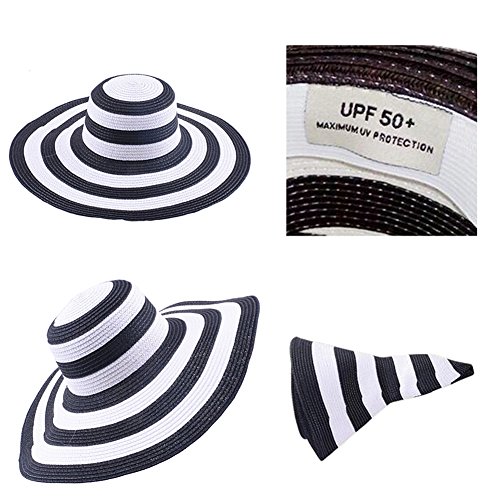 Itopfox Women's Beachwear Sun Hat Striped Straw Hat Floppy Big Brim Hat