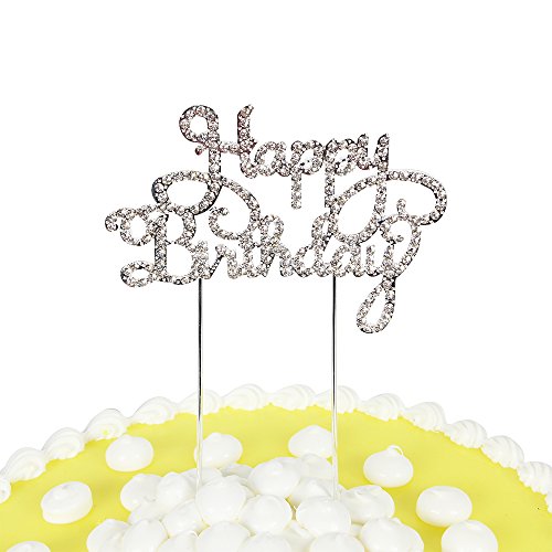 PALASASA Happy Birthday Cake Topper, Crystal Rhinestones on Silver Metal, Party Decorations
