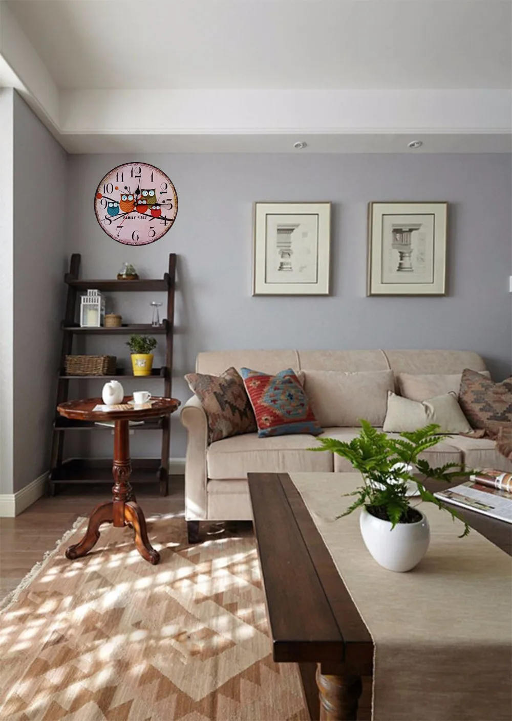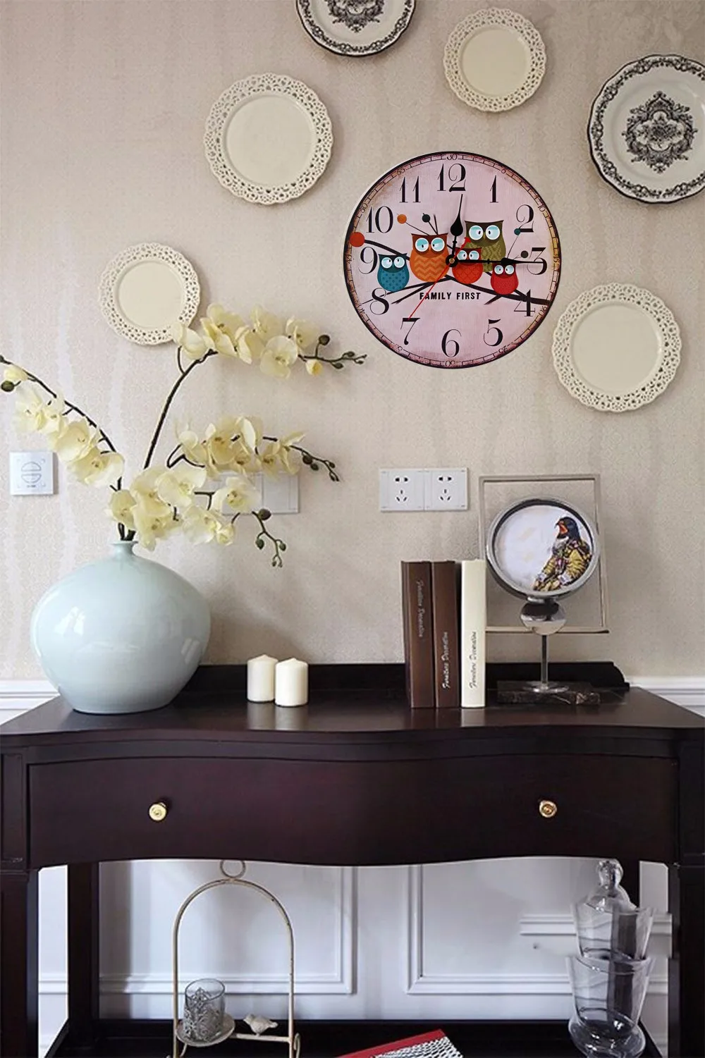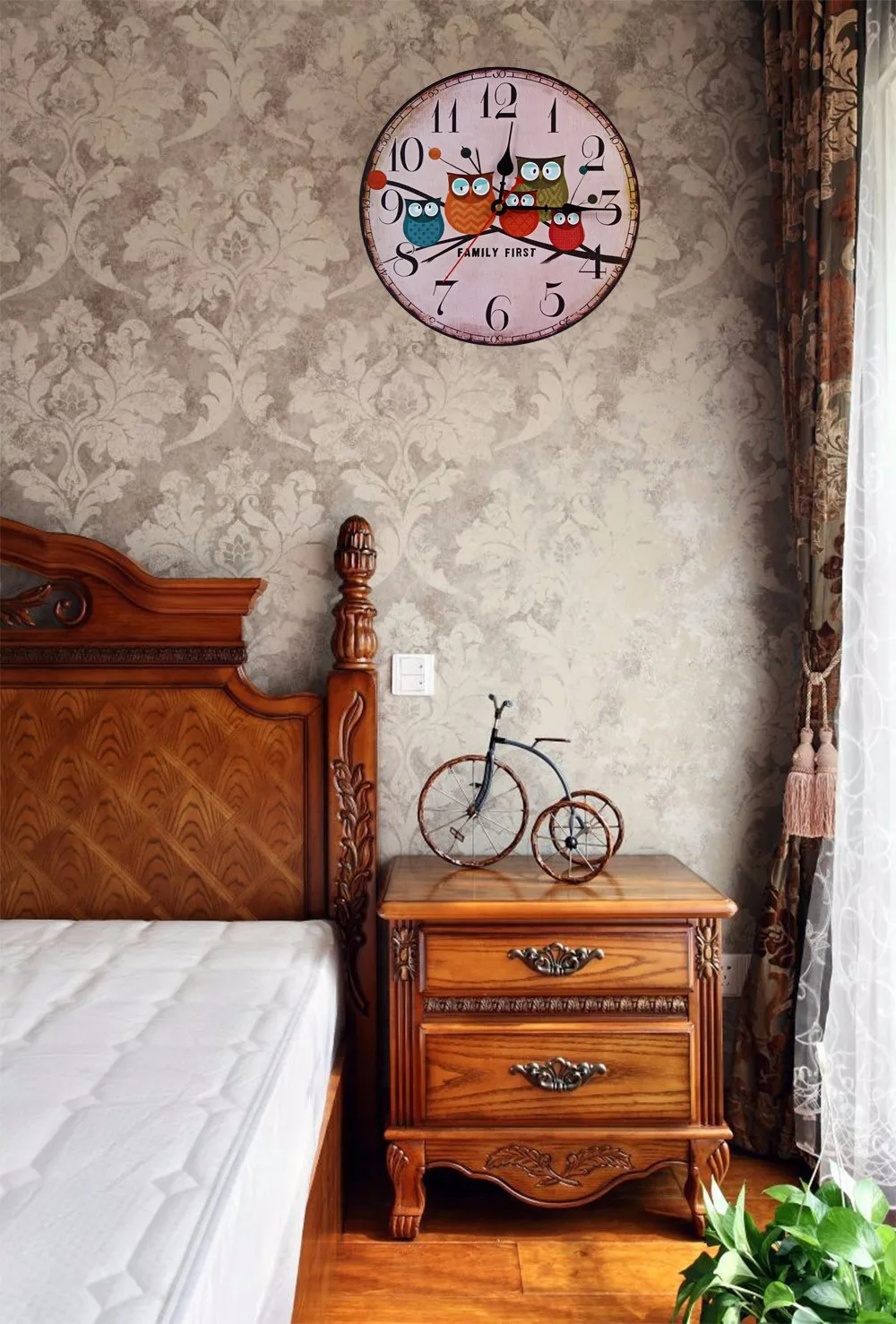 2016 New European Style Vintage Creative Forest Owl Round Wood Wall Clock Quartz Bracket Kitchen Clocks Decoration Decor