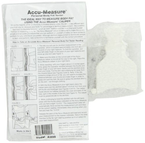 -. Brand : Accu Measure -. EAN : 0785923918396 -. Feature : Measure your own body fat easily and accurately / Easy to use-by yourself-on one convenient site / No dangerous or electronic current or false readings / Easy to read measurements slides and stops at correct reading -. IsAdultProduct : 0 -. Label : AccuMeasure -. Manufacturer : AccuMeasure -. MPN : na -. PackageQuantity : 1 -. PartNumber : na -. ProductGroup : Health and Beauty -. ProductTypeName : PERSONAL_CARE_APPLIANCE -. Publisher : AccuMeasure -. Size : Combo -. Studio : AccuMeasure -. Title : AccuMeasure MyoTape MT05 and AM-3000 Fitness 3000 Personal Body Fat Tester Kit -. UPC : 785923918396