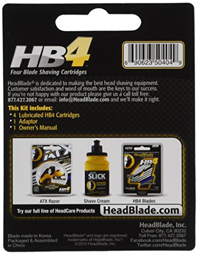 The HB4 four-bladed cartridge comes standard on the HeadBlade ATX and delivers amazing performance due to its flow through design and seamless blade construction. Over three years were spent creating a unique pivot that lets the HB4 or HB6 blade cartridge be used on any HeadBlade, including the original HeadBlade Classic. Contains one adapter and four blades.Feature