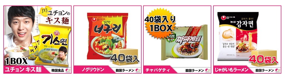 辛ラーメン、ユチョンギス麺、ジャガイモ麺、チャパゲティ、ノグリ(1BOX=40個入り)