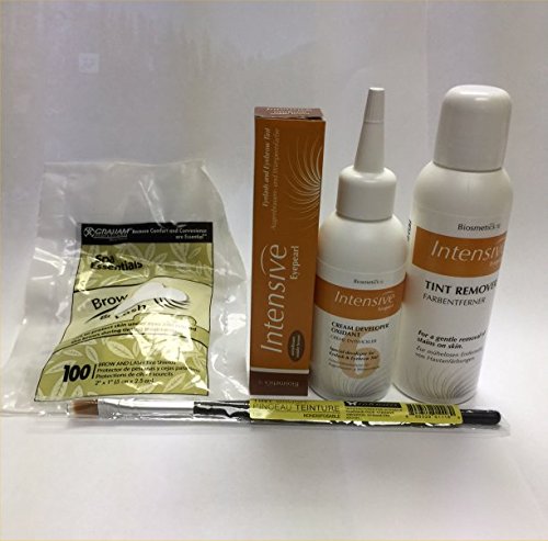 Complete kit contains Intensive Lash & Brow Tint Medium Brown 20ml, 3 oz Intensive Tint Developer, 3 oz Intensive Spot Remover, Intensive Tint Brush, 100 Brow & Lash Tint Shields (protects skin under eyes & around brows)