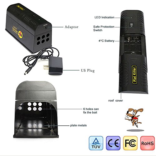 - SAFE PROTECTION – No dangerous poisons and chemicals. Set with safety protection switch, in order to prevent mistaken electric shock to person. This trap widely applies in dining-room, cookroom, bedroom, office, hotel and any places that rats ususlly appear.