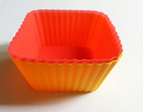 Elome Reusable Silicone Cupcake Liners, Baking Cups, Muffin Molds, Square-Shaped, 12 Pack