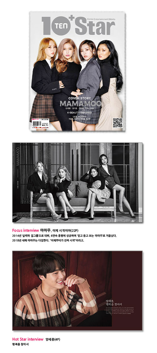 韓国芸能雑誌 10ASIA(テン・アジア) 2018年 1月号:10+Star (MAMAMOO、ミンソ、ヤン・セジョン、チャン・ギヨン、ウ・ドファン、ソヒョン、チョン・ドンファ、JUN.K、シン・イジュン、オ・インヘ、ホ・ヨンセン記事)