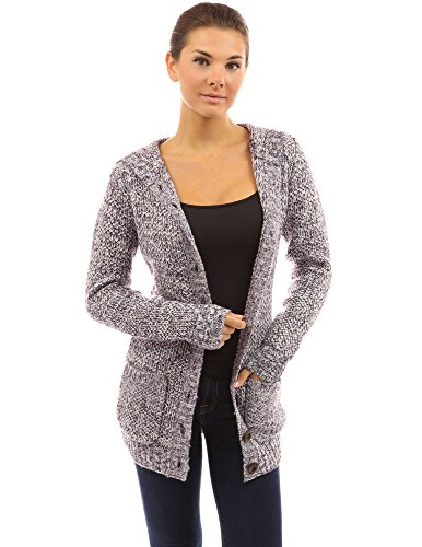 PattyBoutik Hoodie Button Up Long Sleeve Pockets Marled Knit Sweater Cardigan. Model in pictures is 5 feet 8 inches (173cm) tall wearing size S.