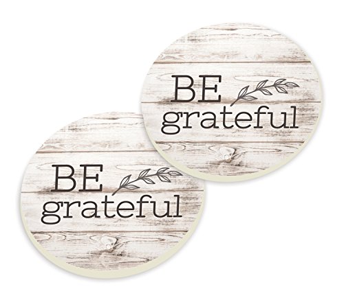 Be Grateful Typewriter Design Wood Look Set of 2 Ceramic Car Coaster Pack