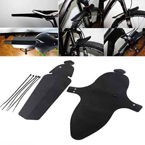 Description: - Perfect bicycle front and rear mudguard set. - Keep your bicycle dryer and cleaner. - Light weight and easy to assemble. - Made of a robust flexible plastic material, 360°torsion, also keep well. - Designed to fit as close as possible to the knobbly bits for optimum 'muck' catching. - To solve the trouble of the rainwater. - One for front wheel and the other one for rear. Specification: - Material: ABS Plastic - Front Mudguard: Approx. 30 x 26cm / 11.8 x 10.2inch - Rear Mudguard: Approx. 31 x 11cm / 12.2 x 4.3inch - Color: Black Package Includes: 1 Piece Front Bicycle Mudguard 1 Piece Rear Bicycle Mudguard 5 Pieces Ties Note: Please allow 1-3cm error due to manual measurement. 0 |