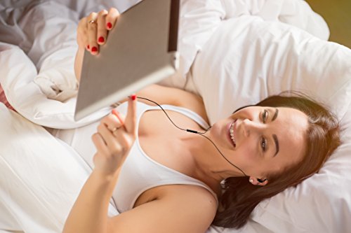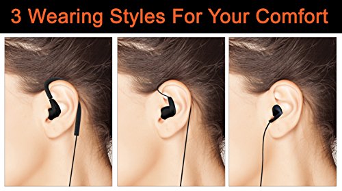 DESIGNED TO FIT PERFECTLY These in-ear headphones are designed to rest low in the ear, cable goes over or under your ears. The earbuds are specifically design to stay in position and not fall out. Being light with a smooth design make these earbuds extremely portable. Because the earphones sit in the ear canal, they dont affect hairstyles, or interfere with glasses or earrings. Included is an ear hook which allows you 3 different wearing styles depending on your preference or activity