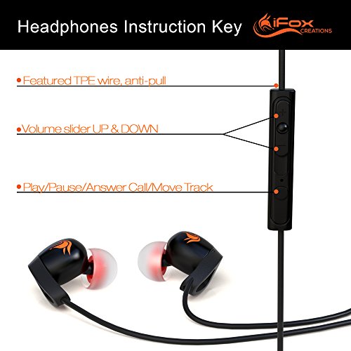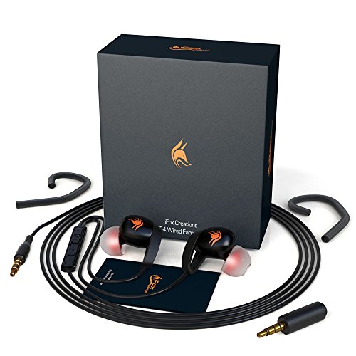 iFox - iFE4 In-Ear Wired Sports Earphones - Built-in Mic and Volume Control - Wireless Pairing with all Bluetooth Devices - Comfort Fit Design with Ear Hook