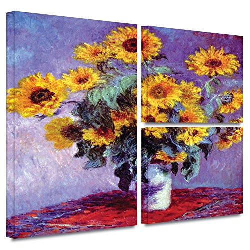 Claude Monet 'Sunflowers' 3 piece gallery-wrapped canvas is a high-quality canvas print of peaceful sunflowers resting in a delicate table vase. This classical masterpiece will add beauty and culture to your home or office.