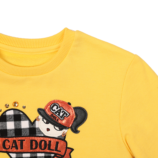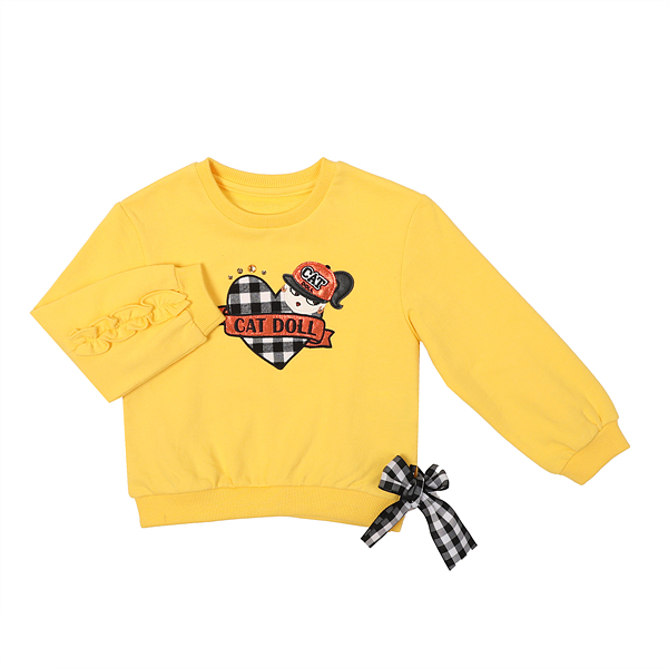 상품설명 예쁜 노랑 컬러감에 밑단 한쪽의 절개 트임에 체크 리본으로 포인트를 준 귀여운 맨투맨입니다. 상판에 체크&오렌지 컬러믹스 캣돌 자수가 캐쥬얼한 분위기를 더 업시켜줍니다. 트렌디 캐쥬얼한 코디에 활용하기 좋은 아이템으로 Q74DAS030 과 함께 큐티 캐쥬얼 룩을 연출할수 있습니다.