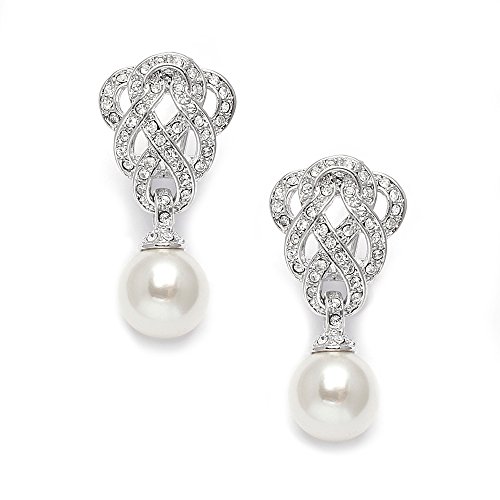 -. Title : Mariell Vintage Clip-On CZ Bridal Wedding Earrings with Light Ivory Pearl Drops - Celtic Braided Style