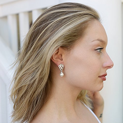 -. Feature : Designer Vintage CZ Pave Scroll and Pearl Earrings with Post and Comfort Disc Backs / Plated in Genuine Platinum-Based Rhodium and Measure 1 1/8 Inches High / Stones are Top Quality AAAAA Grade Cubic Zirconia / Lifetime Guaranteed Silver Rhodium Plating with Enduring Lustre / Includes Beautiful Free Gift Box Ideal for Bridal, Wedding, Holiday or Anniversary Gifts