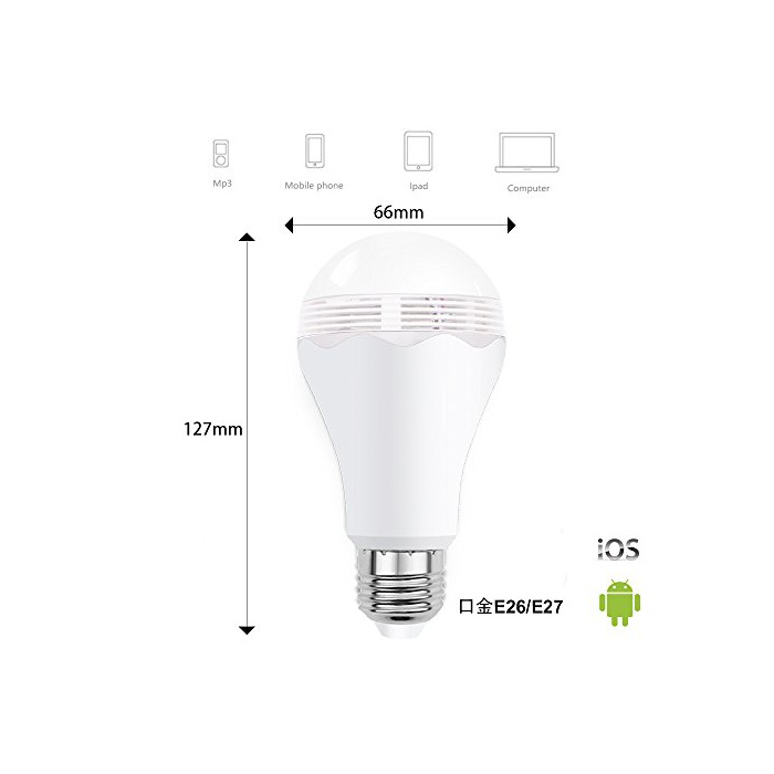 원본상품명: スマトLED電球 MINGER 6.5W 2700K A19 Ledライト 3W bluetooth 音再生 スピカ ランプ リビング/室/トイレ/お風呂用 電球色 Android/Appl