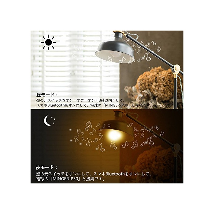 【설치 간단】전구 스피커를 E26/27의 소켓에 설치하고, 《스마호》Bluetooth를 온으로,전구의「MINGER-P30」와 접속,《스마호》에 좋아하는 음악을 선택해,음악을 즐길 수 있습니다.