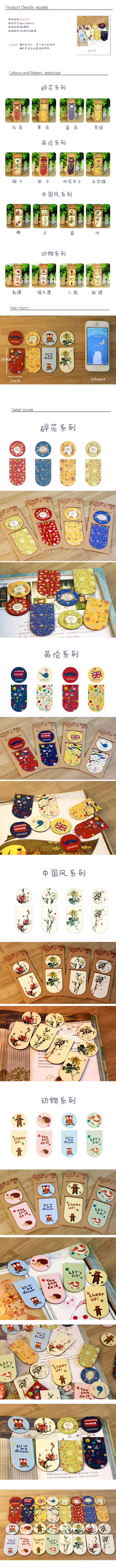 新品中国风书签碎花英伦风可爱动物磁书签多功能复古磁性书签