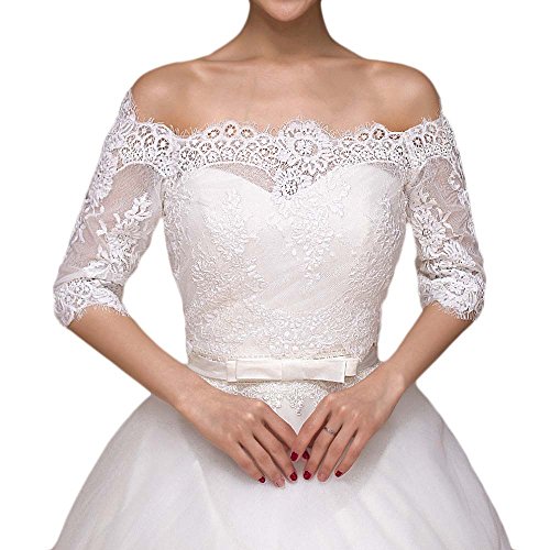 (BEAUTBRIDE)/Accessories/Scarves/DIRECT FROM USA/Beautbride Women's Off Shoulder Wedding Shrug Lace Half Sleeves Bolero Jackets BEPJ004
