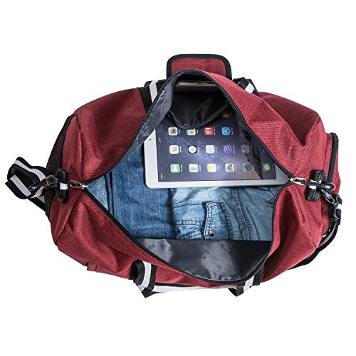 -. Feature : Material: Canvas Fabric / Size: 46*21*27CM.Come with a detachable shoulder strap(1.2 meters) can easily turn the bag into a crossbody bag/shoulder bag. / One huge compartment for clothes, shoes, umbrellas and other daily necessities; Inside the bag you will find a small zippered pocket which is great for things like keys or other small items. / Occasion:Awesome duffel Bag for outdoor sports, working, traveling, hiking, camping, school and everyday using / Lightweight and easy to fit in gym storage locker