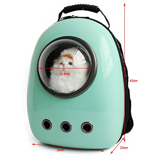 Description: Load less than 5kg/ 11.02pounce, for small cat or dog; Future designing, astronaut capsule shape, cool and fun; Cute look, 29X23X42cm/ 11.42X9.06X16.54inch,lovely pet bag; Nice for walks, bike rides and other outdoor activities, travel pet carrier helper; Transparent breathable cover, add more eyesight for pet puppies,more relief less fear.